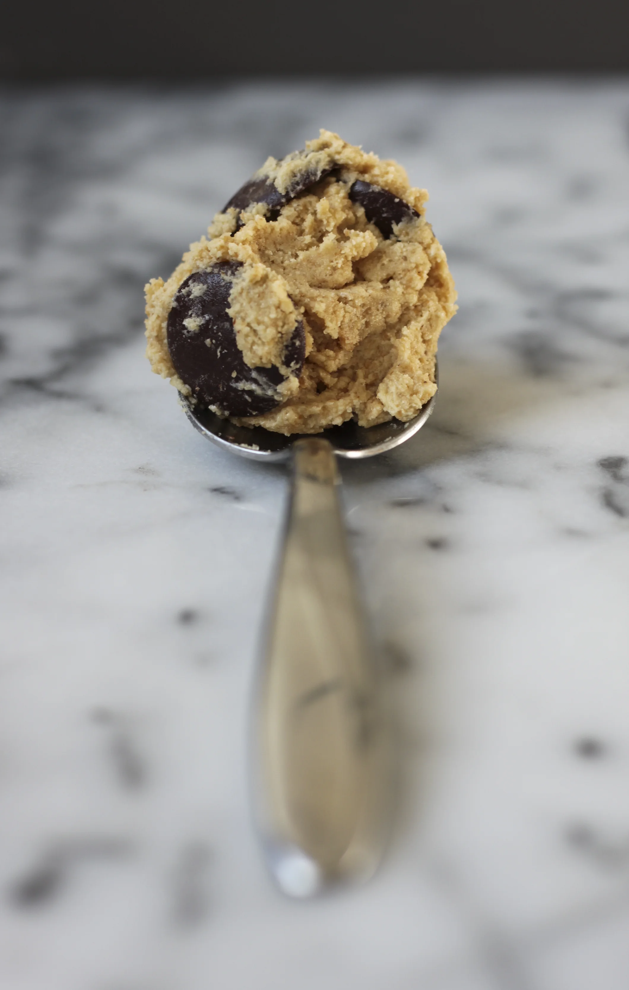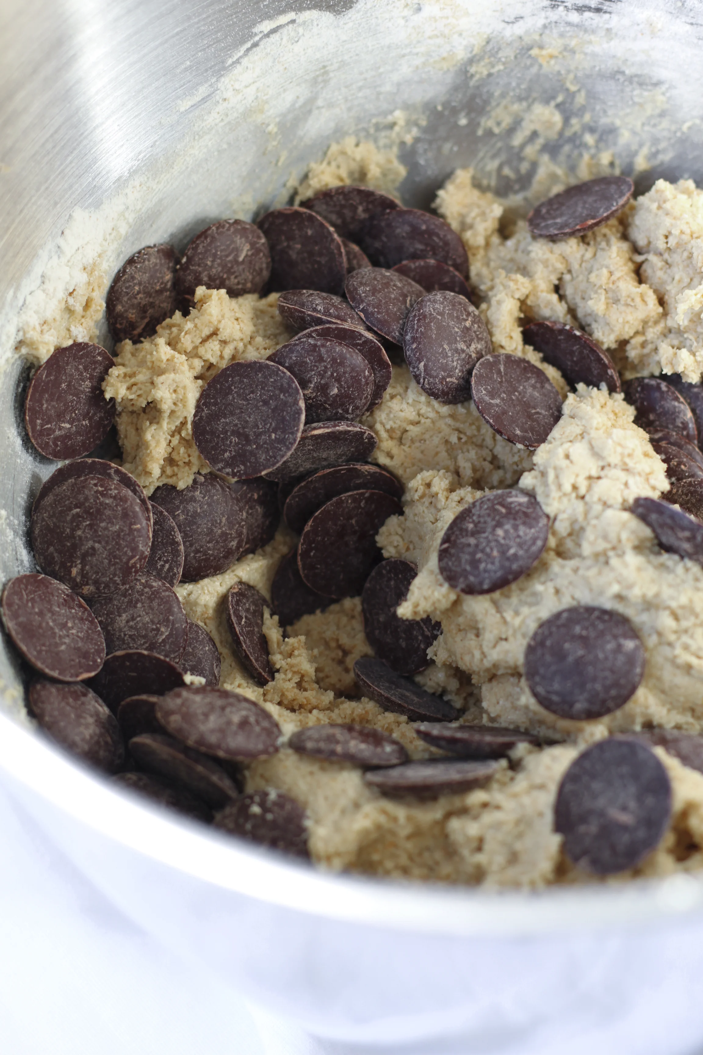 6. Add the chocolate chips and mix very briefly (or fold in with a large spoon), just until they are evenly distributed throughout the dough.